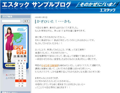 風邪薬でおなじみの「エスエス製薬」から「かぜひき注意指数」というブログパーツが配布されています。