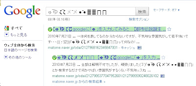 Googleで「ゅ」の後にスペースを入れて検索すると『ゅ̅ゆ ζ ̅ζ ㄨ ̈ㄨ ● ̈● ▓ ▓ ∏ ∏』という、意味不明のカオスな文字が出てくる。
