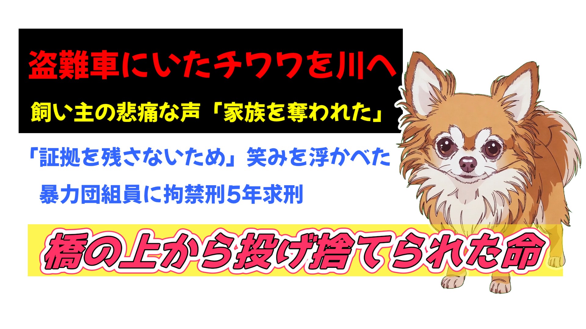 盗んだ車に乗っていたチワワを川へ投げ捨てて死なせたとして、山梨県甲府市の暴力団組員の男(23)が動物愛護法違反などの罪に問われ、検察側は拘禁刑5年を求刑しました。1 2
