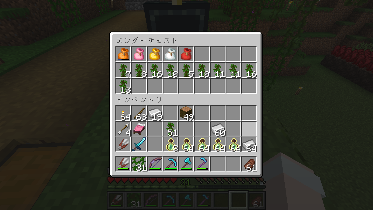 さらに、1.16以降のアップデートでクワの性能向上が進み、より多くの素材で高速に葉っぱを壊せるようになっています。