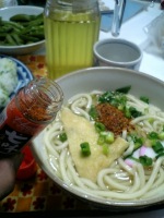 うどんを食べようと、七味唐辛子の蓋を取り、振り掛けました。